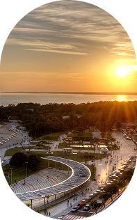 A orla oferece diversas opções com vista para o Rio Negro. Excelente para um jantar com vista, drinks especiais e uma caminhada pré-show no calçadão.